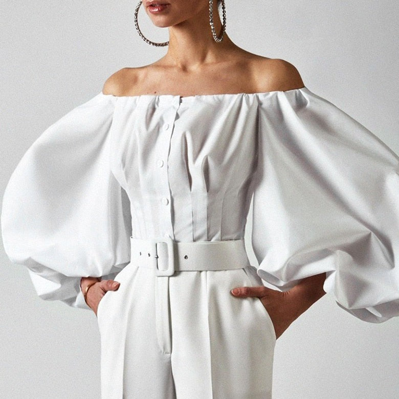 Las mangas largas añaden un toque de sofisticación al conjunto, mientras que el blanco clásico le confiere un aspecto elegante y atemporal. El corset realza los hombros y el busto, creando una silueta femenina y favorecedora.