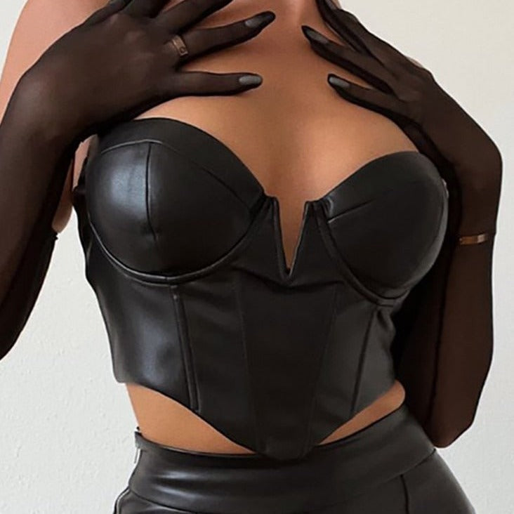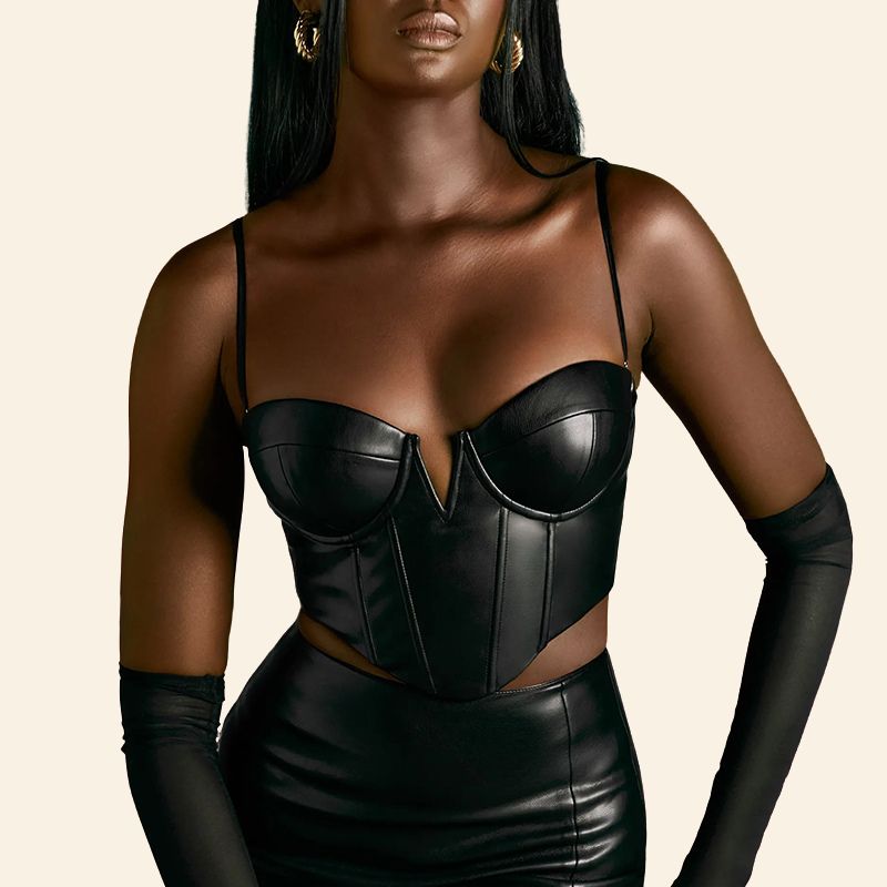 - Composición de este irresistible corset: piel sintética, látex