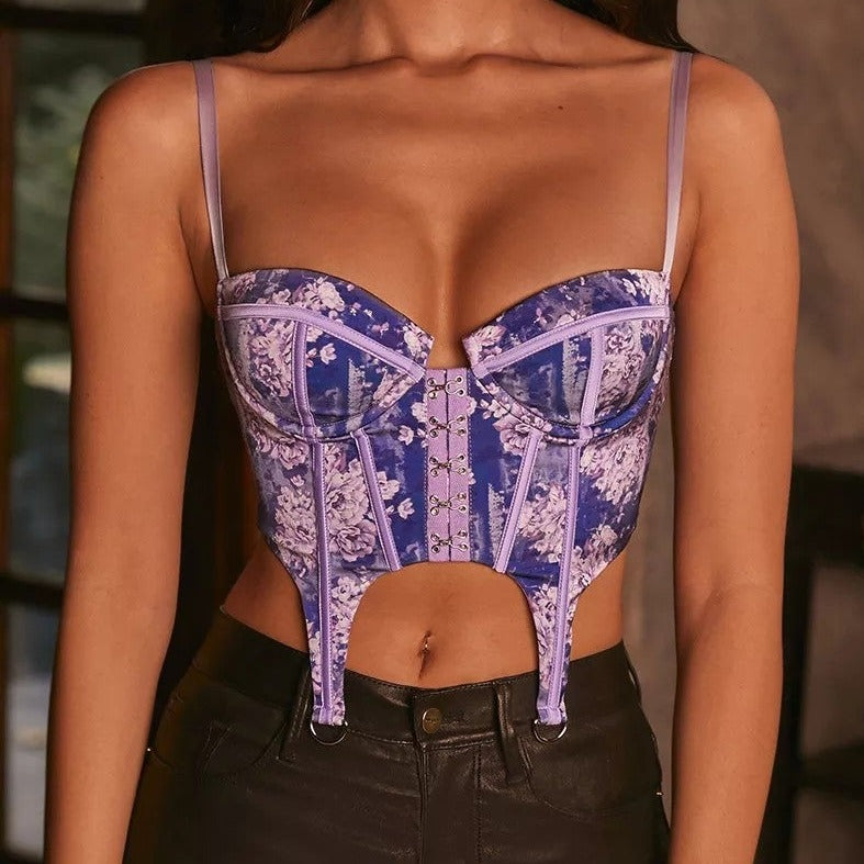 - Muestra tu feminidad luciendo el sexy corset floral con tirantes finos