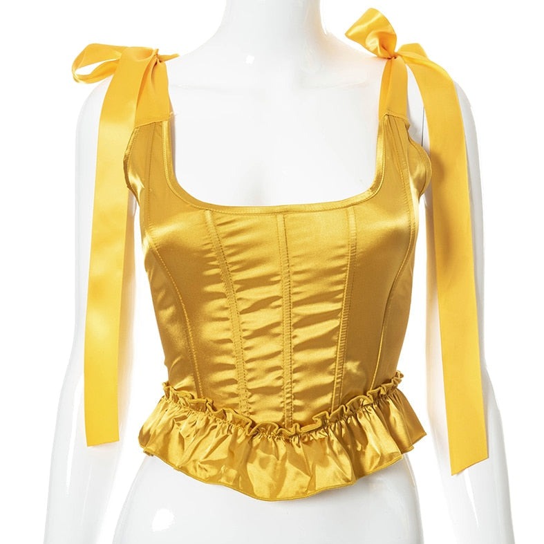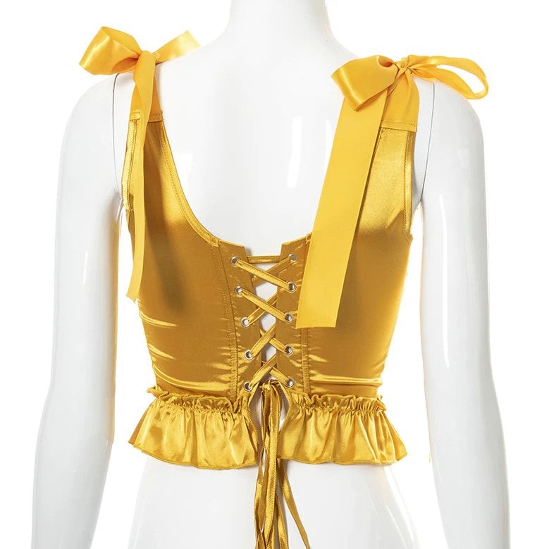 Corset victoriano dorado con lazos de encaje