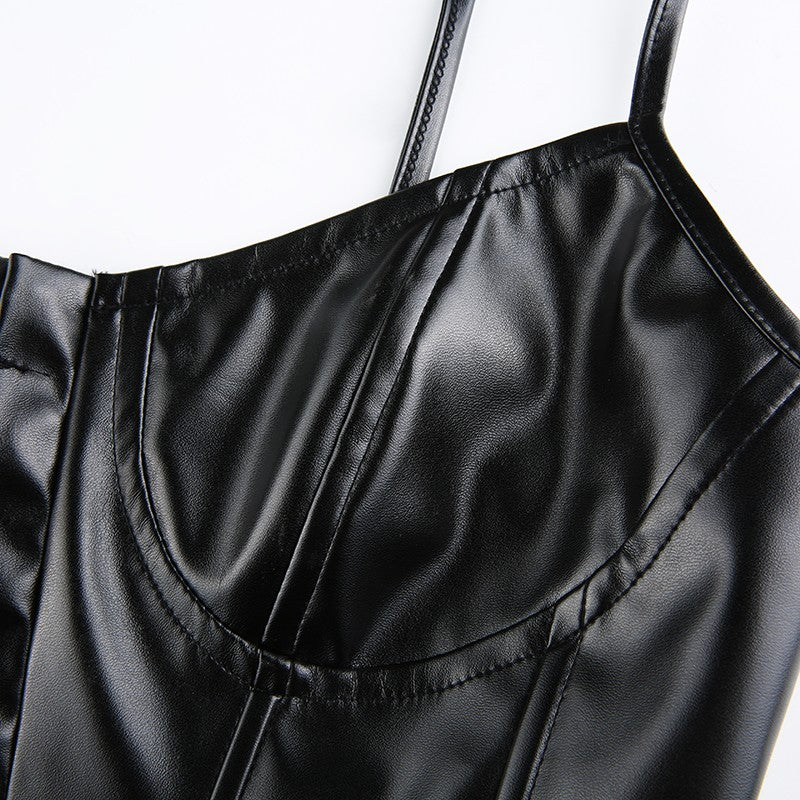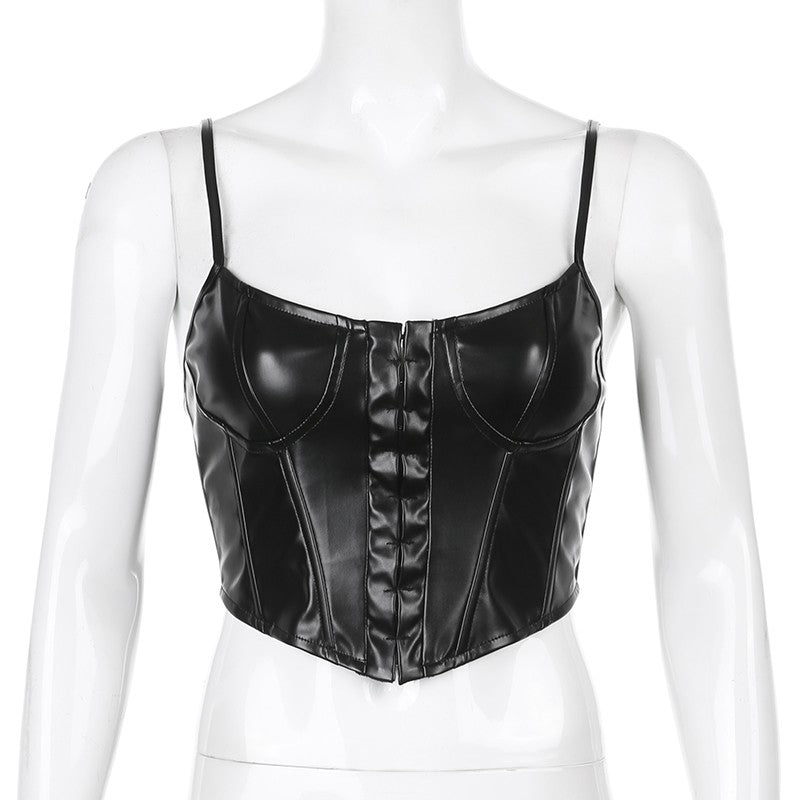 - Material de este irresistible corset: Piel sintética, látex