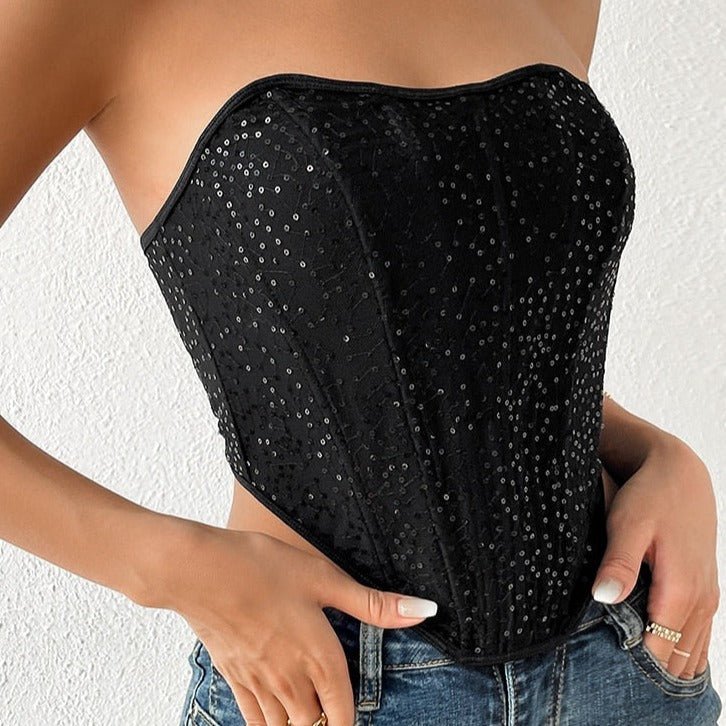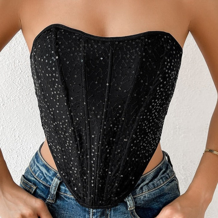 El Corset Lentejuelas es la elección perfecta para cualquier ocasión especial, desde glamurosas veladas hasta eventos formales.