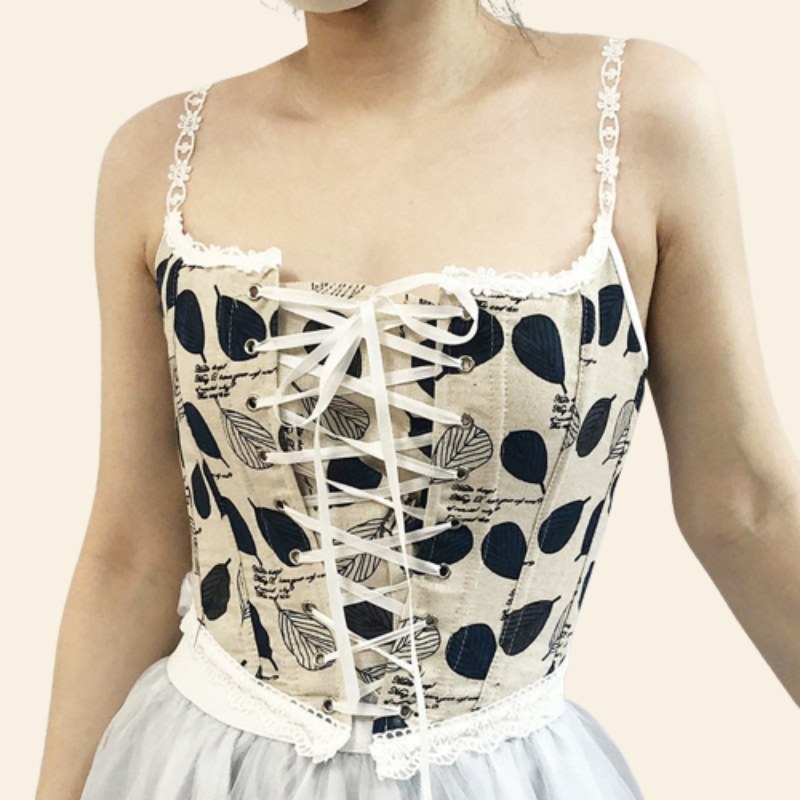 Es un Corset Medieval, con un aire romántico y vintage. No es demasiado atrevido, por lo que es perfecto para todas las figuras.