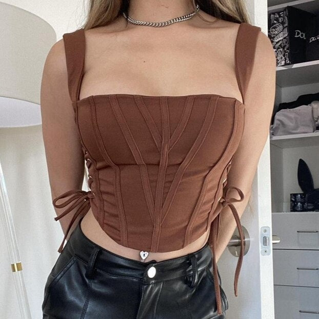 Descubra una silueta elegante y femenina con nuestro corse marrón sin tirantes, que realza sus curvas con estilo y comodidad