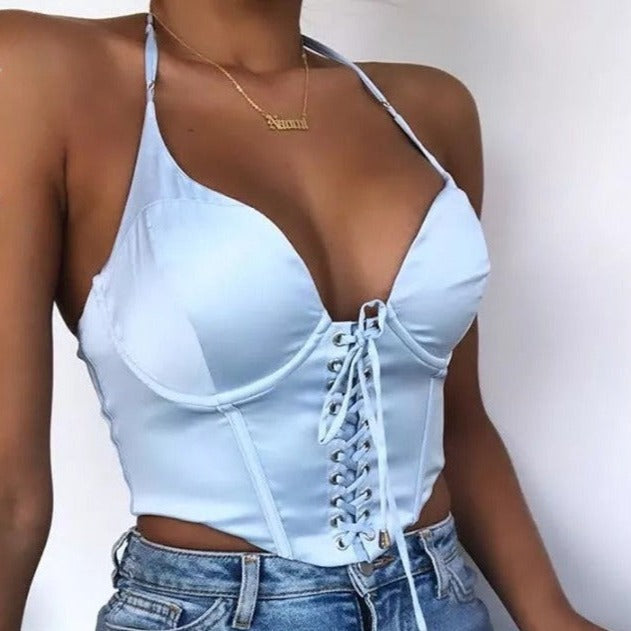 Añade un toque sexy a tu look de día con este corset de tirantes.